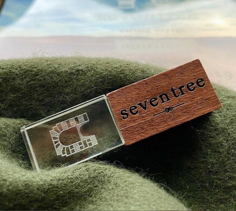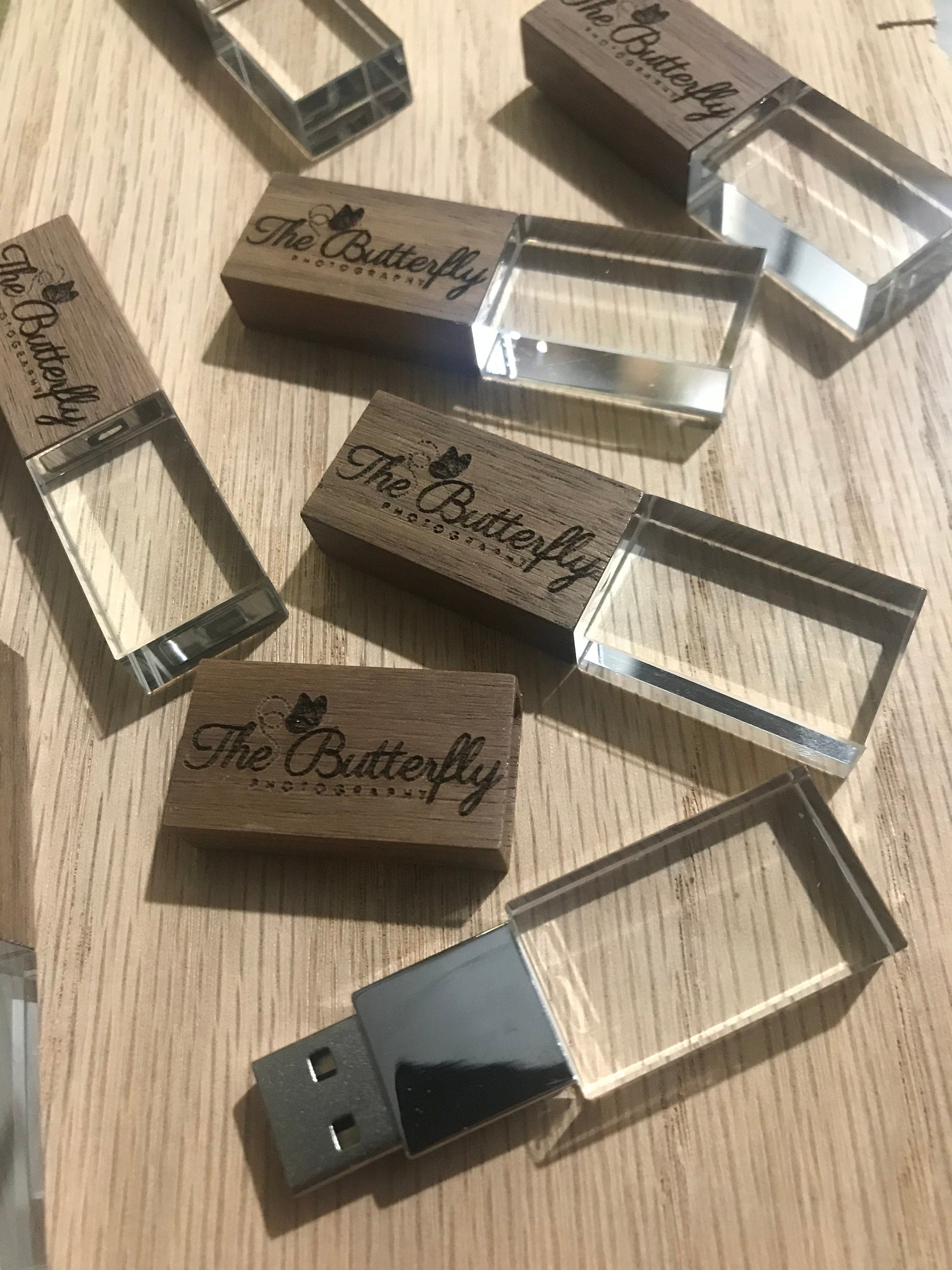 16gb USB key - Walnut / glass. Add customization - Wedding or Special Occasion Gift